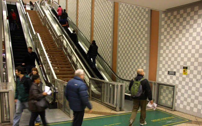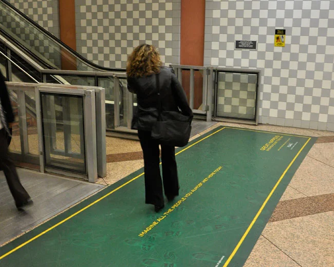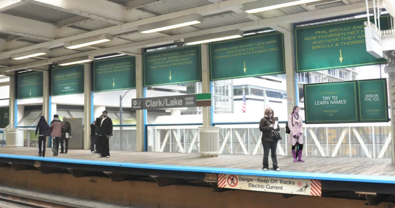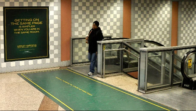 Posters were planted on the floor of a high traffic area in the Clark/Lake Station in Chicago.
