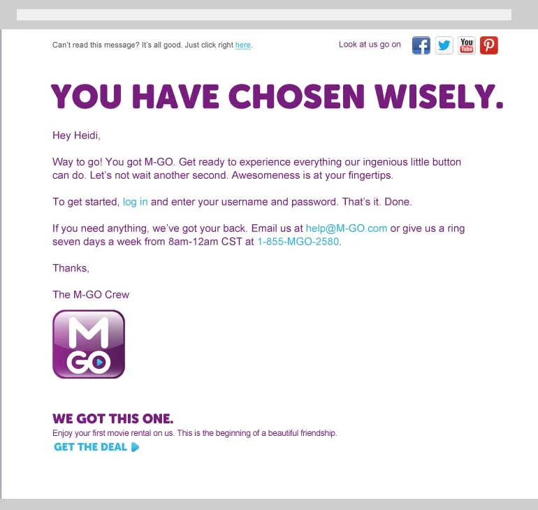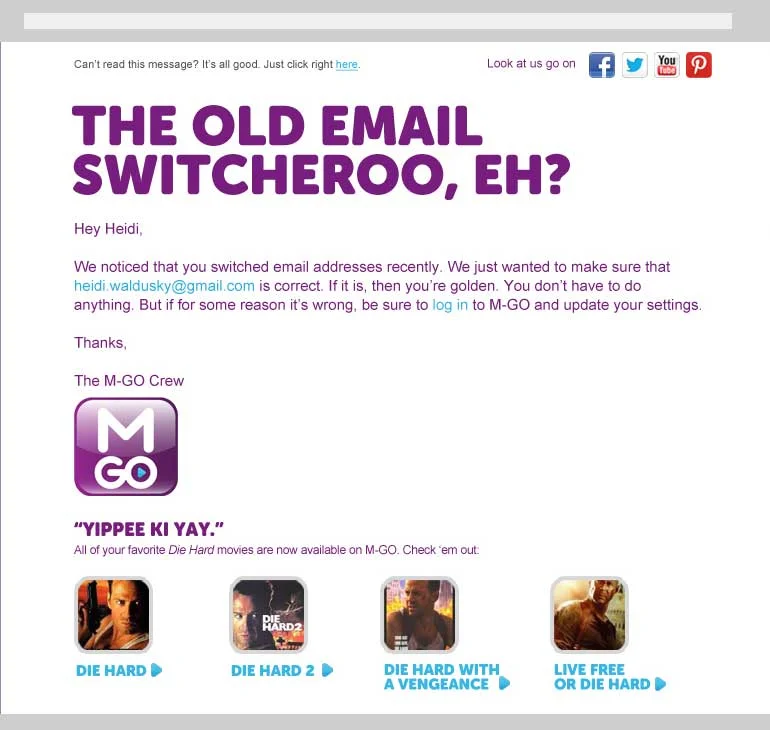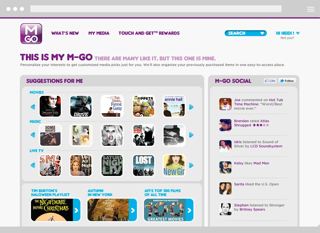 We've also designed exclusive email invitations to download M-Go, as well as Klout perks and a Four-Square reward for being the mayor of a movie theatre.