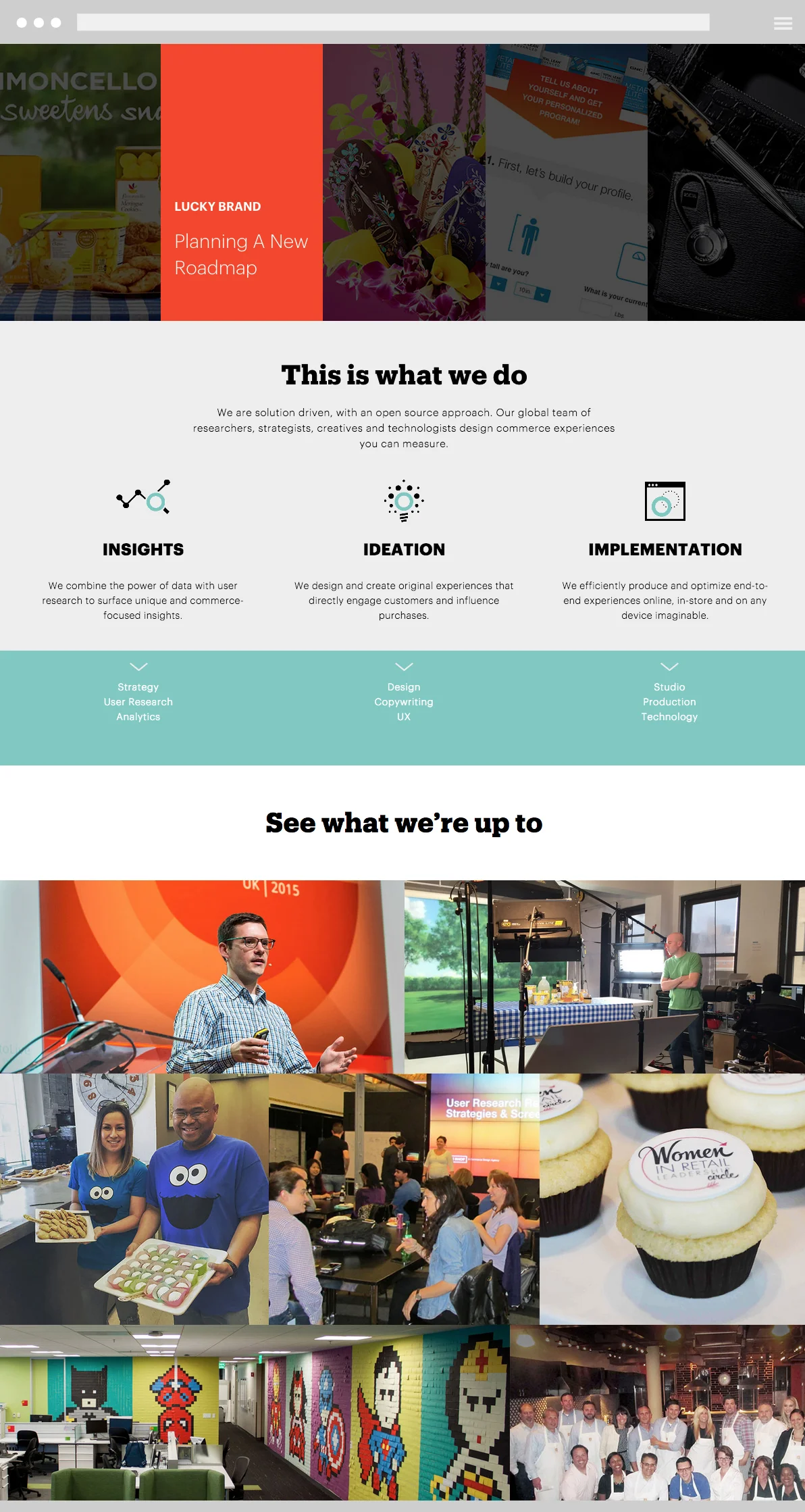 The Shop caters to brands, agencies and system integrators, leveraging our insights, ideation and implementation in order to best deliver to the consumer. The idea of The Shop is to also be a workshop where our creatives, strategists, and technologists collaborate with clients, partners, and consumers to design better commerce experiences.